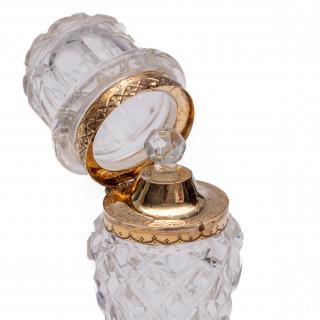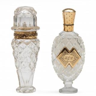 Twee kristallen parfumflacons met gouden montuur, 19e eeuw.