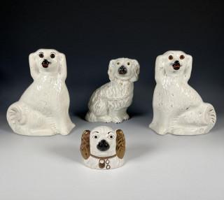 Staffordshire, paar aardewerk vormstukken van honden, 19e eeuw