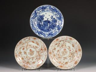 Japan, paar porseleinen 'melk en bloed' borden en blauw-wit porseleinen bord, Edo periode