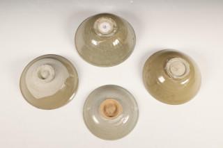 China, vier celadon geglazuurde kommen, Noordelijke Song-dynastie, 10e-12e eeuw,