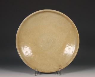 China, celadon glazed dish, Northern Sung dynasty, 10th-12th century, with stylised floral decoration, covered with a yellowish grey glaze (condition: light wear due to exposure to sea-water)
