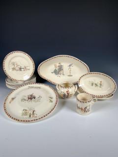 Bestaande uit acht kleine borden, drie dienschalen, suikerpot (geen deksel), beker en puddingschaal.