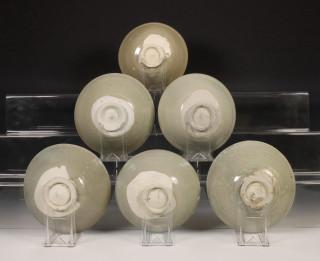 China, zes diepe celadon geglazuurde kommen, Noordelijke Song-dynastie, 10e-12e eeuw,