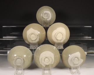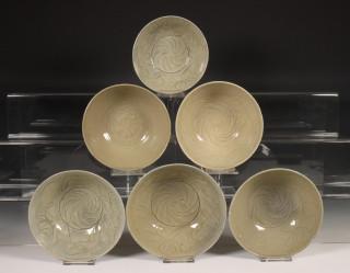 China, zes diepe celadon geglazuurde kommen, Noordelijke Song-dynastie, 10e-12e eeuw,