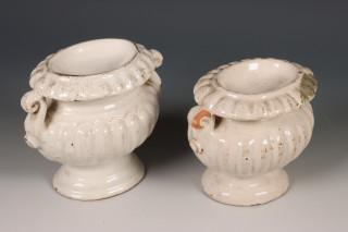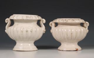 Paar wit geglazuurde aardewerk zoutvatten, 19e eeuw;