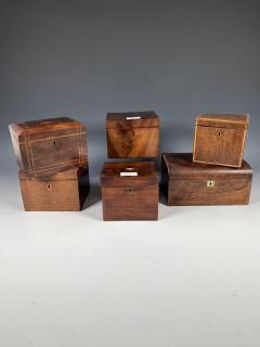 Diverse mahoniehouten kistjes, 19e eeuw;