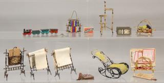 Diverse antieke poppenhuis attributen, ca. 1900;
