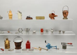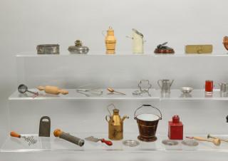 Diverse antieke poppenhuis keuken attributen, ca. 1900;