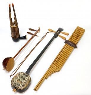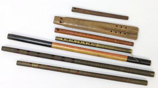 o.a. Thailand, bamboe panfluit, China, bamboe meerstemige fluit, sho, twee chinese luiten en meerdere fluiten. Herkomst collectie Droppert.