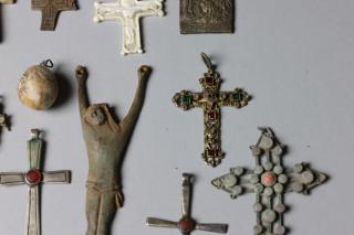 Diverse crucifixen, corpus christi en amuletten.