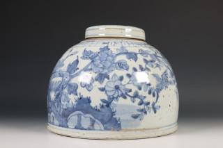 Japan, grote blauw-wit porseleinen dekselpot, begin 20e eeuw,