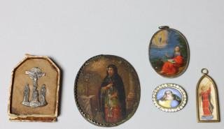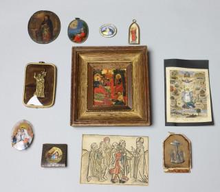 Hierbij diverse religieuze schilderingen en prenten, verschillende materialen.