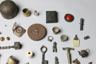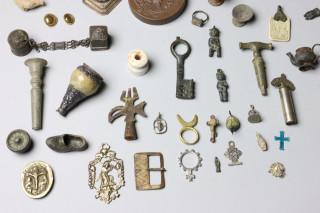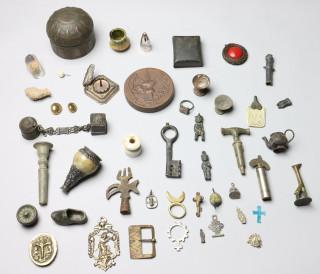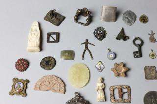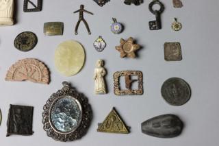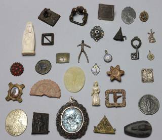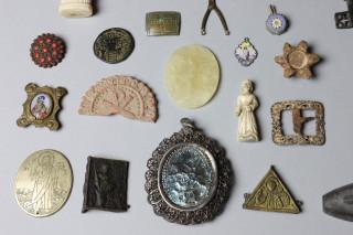 Diverse snuisterijen en religieuze objecten, diverse leeftijden waaronder antiek.