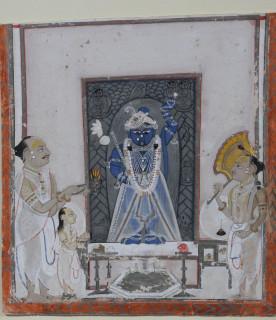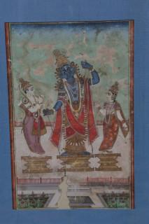 beide met voorstelling van Krishna, een ingelijst achter glas (beschadigd)