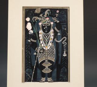 van een godheid op donkerblauwe grond (enkele beschadigingen)