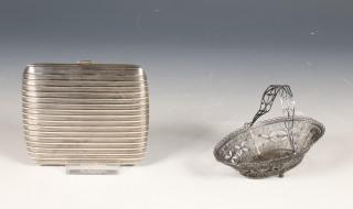 hierbij Duits sigarettenetui met geribd decor, gemerkt, Art Deco, 800st, defectje bij mandje