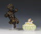 Hierbij een Duits, rond porseleinen dekseldoos bekroond met fee, 20e eeuw