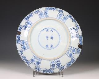 China, silver-mounted blue and white porcelain plate, 19th century,
