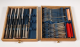bestaande uit 12 dinerlepels, 12 dinervorken, 12 dinermessen, 12 dessertlepels, 12 dessertvorken, 11 dessertmessen, 10 ijslepels, 10 theelepels, 15 cakevorkjes, 2 groentelepels, 1 aardappellepel, 1 soepdienlepel, 1 vlalepel, 4 dienlepels, sladienbestek, 2 dienvorken, voorsnijbestek, 1 kaasschaaf, 1 taartschep, 12 fruitvorken en -messen, 1 broodmes, 2 botermessen, mt. meestens Van Kempen & Begeer, 1966 en differente jaarletters, daarbij diverse edele en onedele sets van sorbetlepels, ijslepels, theelepels en vorkjes