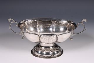 op ovale gelobde voet, de ovale gelode kom met twee gestileerde drakenoren, gegraveerd in schild met monogram en '1793', mt. 'FB'. waarschijnlijk Frans Braaksma, Leeuwarden, 1789-1807