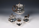 bestaande uit een theepot en deksel, een suikerpot en deksel, een melkkan en een lepelvaas, mt. Zilverfabriek Voorschoten, 1949 en 1950, 2e gehalte