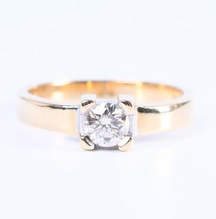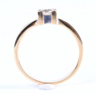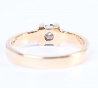 14 k. two tone gold solitaire ring, set with a light brown brilliant cut diamond of approx. 0.45 ct, clarity SI2. Hereby a report from the National Gemmological Laboratory