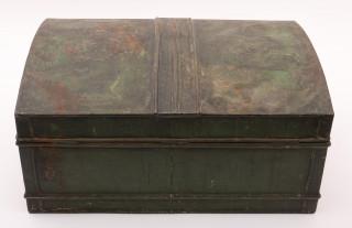 Groen gelakte metalen reiskist, ca. 1900;