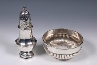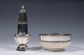 rond model met gelobde onderkant, mt. Antoon Jan Pichal 1918, gemerkt lucardia, 1e gehalte, strooier, achtkantig balustervormig, mt. Fa. J. Gerritsen NV Amsterdam & Zeist ?1909-1924, 2e gehalte,