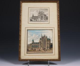 Twee antieke prenten, Leiden, 18e eeuw;