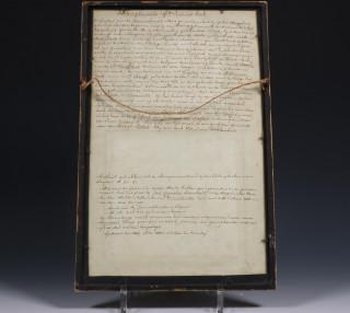 De Hooglandsche Kerk en Pancras Kerck, verso handgeschreven beschrijving. Ingelijst.