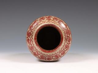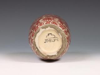 in rood beschilderd met florale motieven, onderzijde met Porceleyne Fles mark