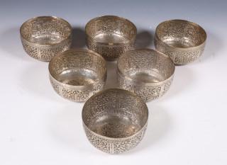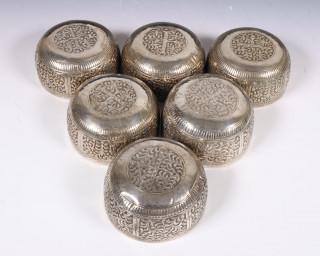 Set van zes djokja gedreven kommen, bwg, 20e eeuw;
