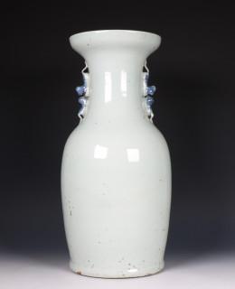decorated with antiquities, applied with twin lion handles (crack to base)