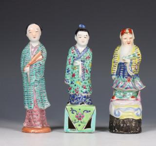 China, three famille rose porcelain figures and Immortals, 19th century,