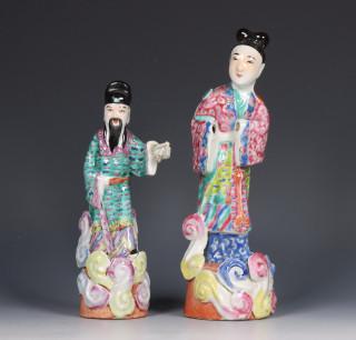 China, two famille rose porcelain figures, 19th/ 20th century,