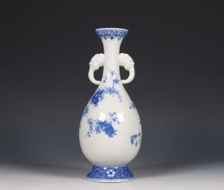 decorated with an abundant flower garden, the slender neck applied with elephant-head handles (minor glaze flaw and glaze crack)