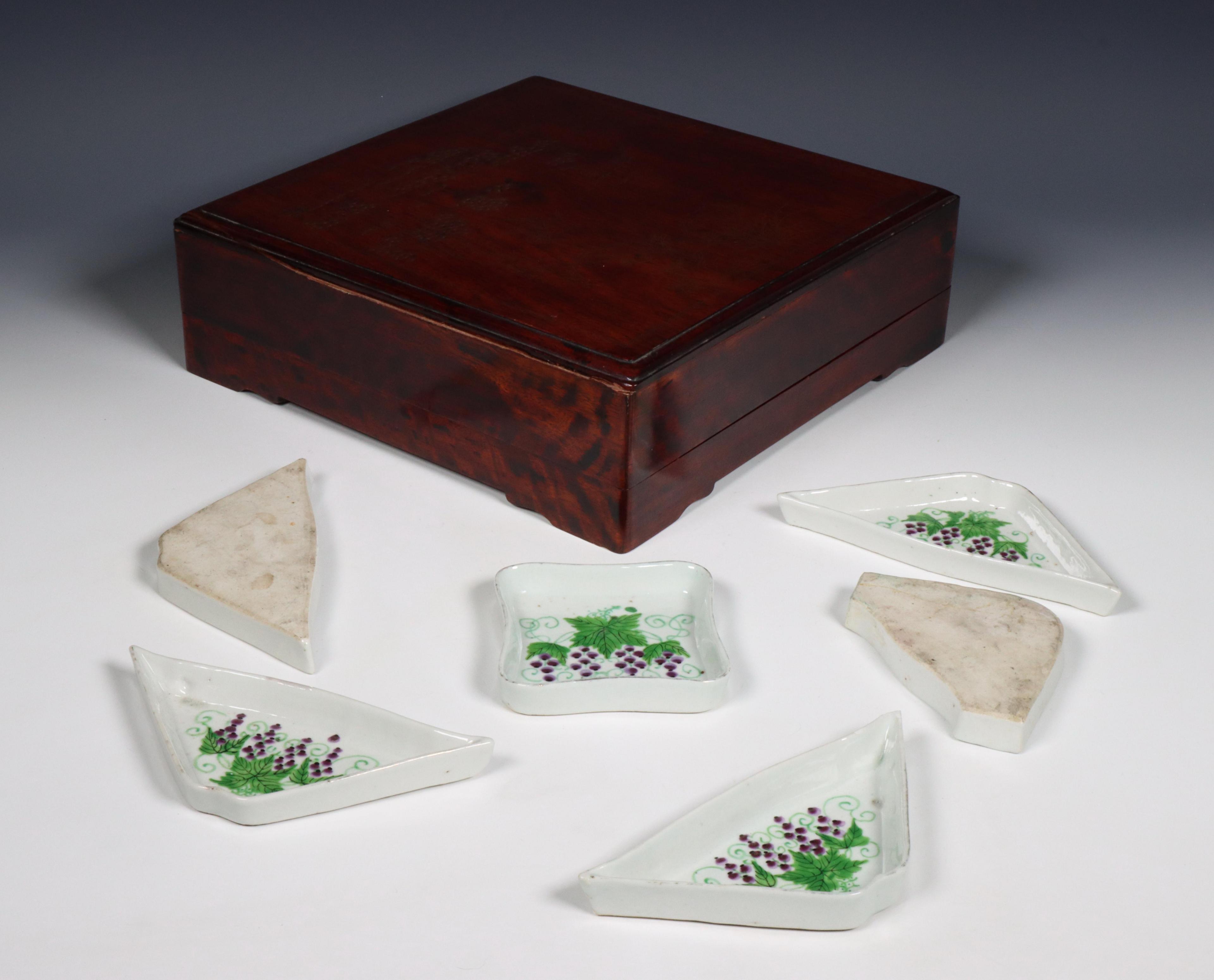 China, porcelain sweetmeat set in wood box, 20th century,