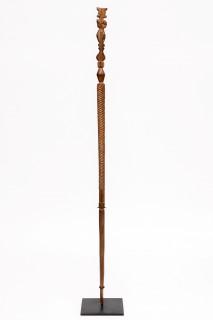 West Afrika, a Ashanti dignitary staff with top carved with hand en rifle en relief and a smaller staff with carved head.