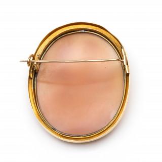 14 kt. Gouden broche met een schelpcamee, ca. 1900.