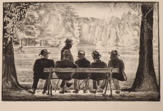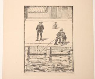 Mannen op een bankje / Visser / Figuur bij een huis