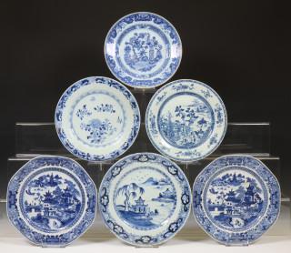 China, seven various blue and white porcelain plates, 18th century and later,