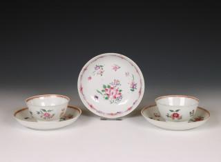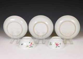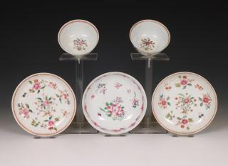 painted with flowers within a spearhead border, together with a single saucer (small rim nicks)