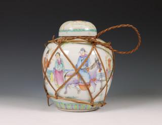 decorated with a procession of dignitaries on horseback and in a wheelcart, with remains of old soy label