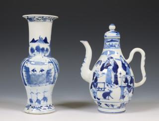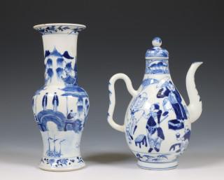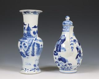 China, blue and white porcelain ewer and vase, 19th-20th century,