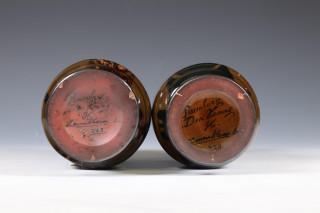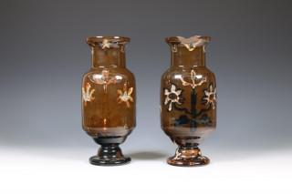 Plateelfabriek Rozenburg Den Haag, paar bruingeglazuurde vazen "Zonnebloem", ca. 1900,