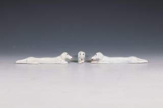 in de vorm van honden (een met afgebroken pootje)
