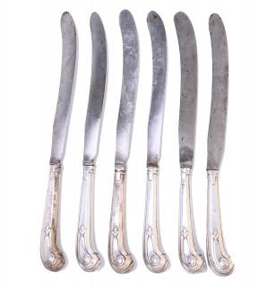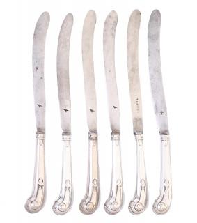 Zes vruchtenmessen met pistoolheften, 18e eeuw,