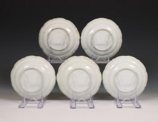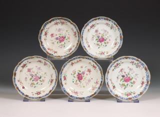 China, set of five famille rose and blue and white saucers, 18th/ 19th century,