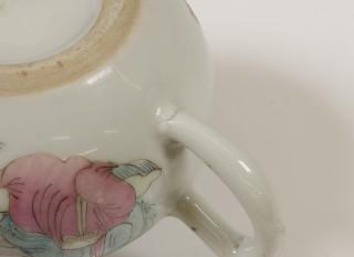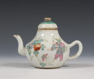 painted with a lady and boy in a garden and the other side with a boy amidst gourds (cover pierced)