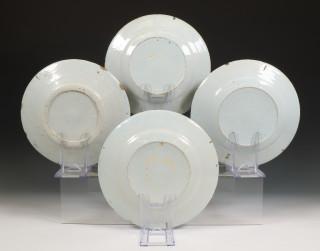 Delft, set van vier blauw-wit aardewerken borden, 18e eeuw,